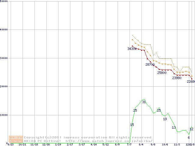 Pentium III 1.13AGHz FC-PGA2 リテールパッケージの価格推移