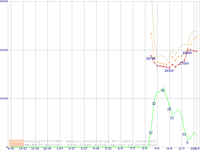 Pentium 4 1.5GHz(478pin)リテールパッケージの価格推移