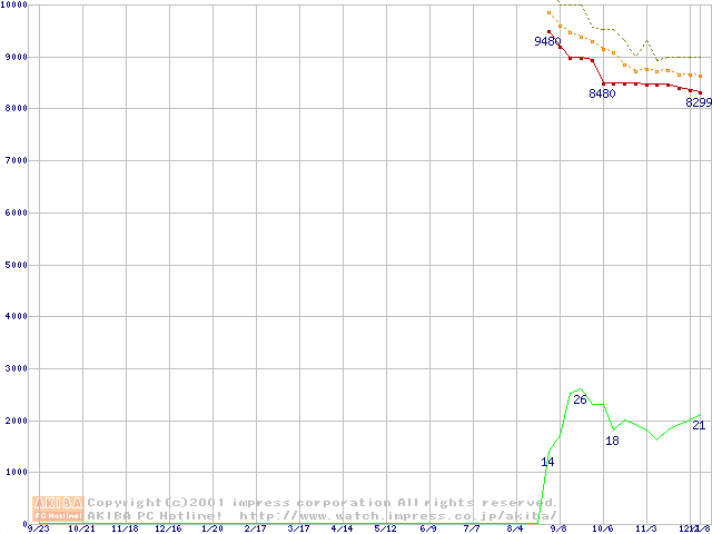 Celeron 950MHz FC-PGA リテールパッケージの価格推移