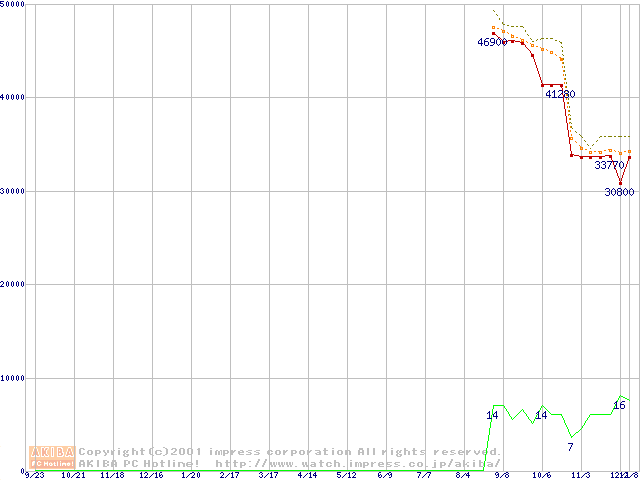 Pentium 4 1.9GHz(423pin)リテールパッケージ(RIMMなし)の価格推移
