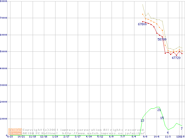 Pentium 4 2GHz(423pin)リテールパッケージ(RIMMなし)の価格推移