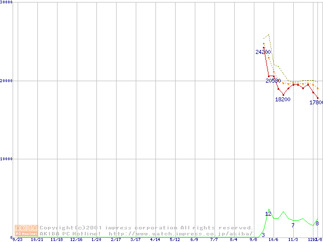 Socket 370 (FC-PGA,FSB 100MHz,L2 256KB)の最安値推移