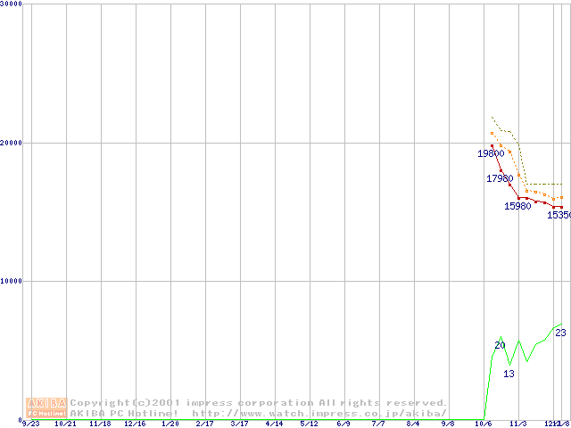 Socket A (Palomino,OPGA,FSB 266MHz,L2 256KB)の最安値推移