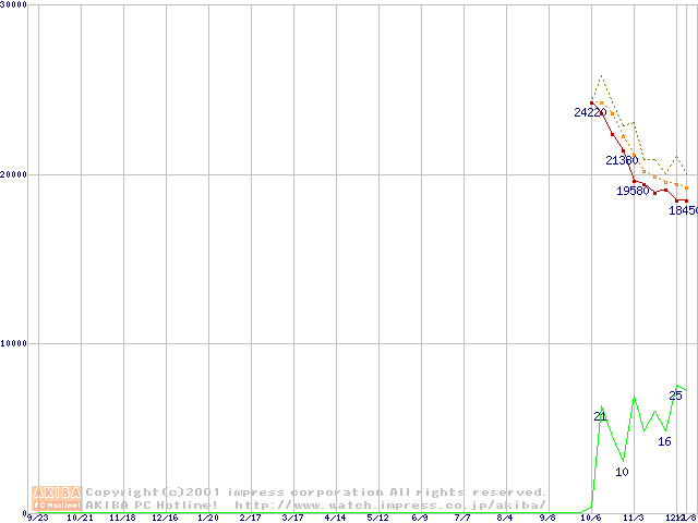 Socket A (Palomino,OPGA,FSB 266MHz,L2 256KB)の最安値推移