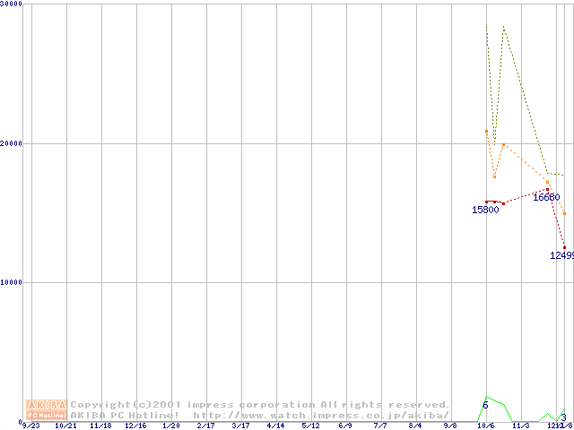 Travelstar 30GT (12.5mm,4200rpm,UltraATA/66,2MB)の最安値推移