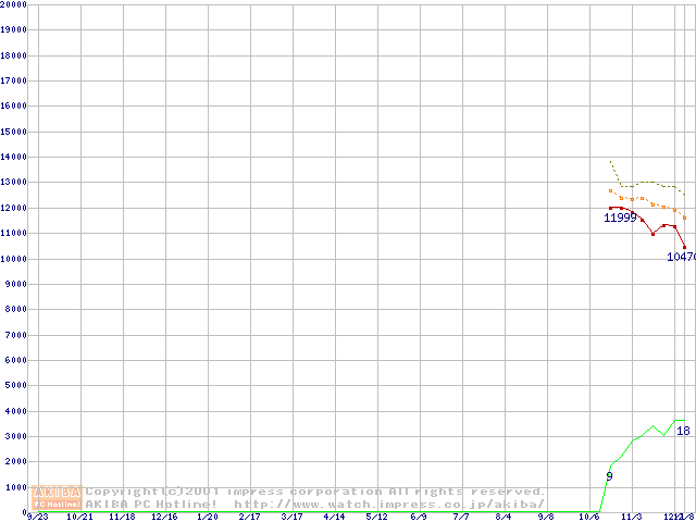 Duron 1.1GHz リテールパッケージの価格推移