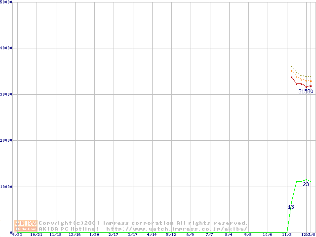 Socket A (Palomino,OPGA,FSB 266MHz,L2 256KB)の最安値推移