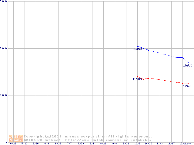 | [↑前グラフ]: | Travelstar 40GN (9.5mm,4200rpm,UltraATA/100,2MB)の最安値推移 |
