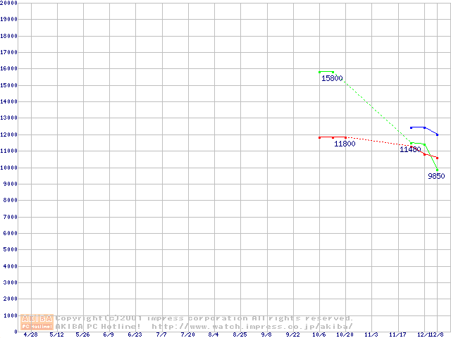 | [↑前グラフ]: | Travelstar 30GN (9.5mm,4200rpm,UltraATA/100,2MB)の最安値推移 |