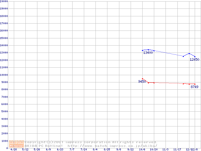 | [↑前グラフ]: | Travelstar 15GN (9.5mm,4200rpm,UltraATA/100,512KB)の最安値推移 |