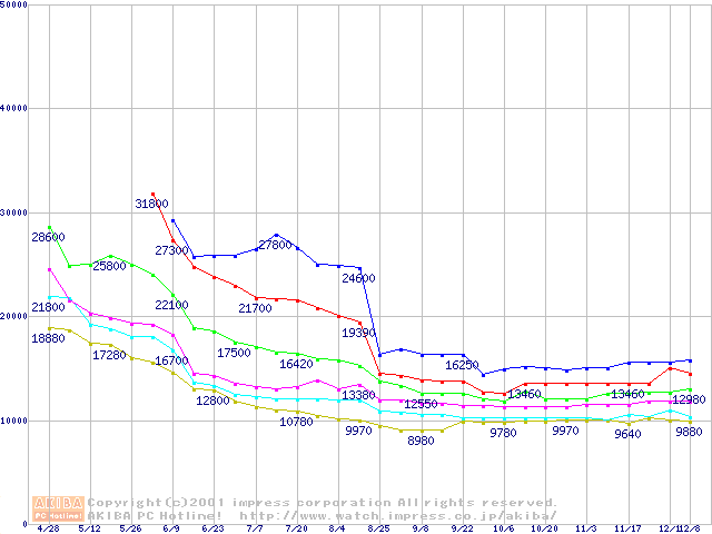 | [↑前グラフ]: | Socket A (Palomino,PGA,FSB 266MHz,L2 256KB)の最安値推移 |