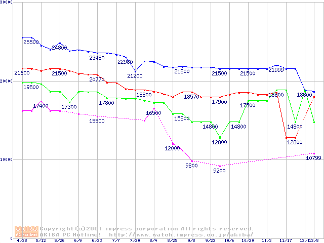 | [↓次グラフ]: | Slot 1 (SECC2,FSB 100MHz,L2 256KB)の最安値推移 |