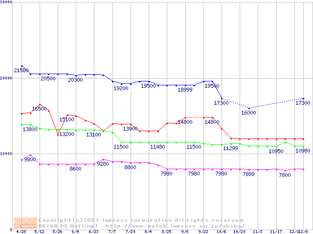 | [↑前グラフ]: | 541DX (5400rpm,UltraATA/100)の最安値推移 |