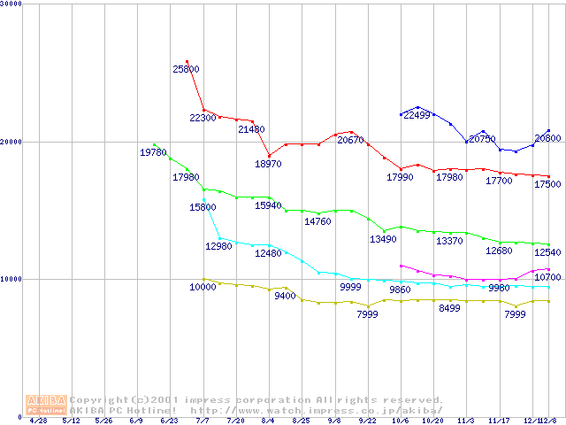 | [↓次グラフ]: | Deskstar 60GXP (7200rpm,UltraATA/100 2MB)の最安値推移 |