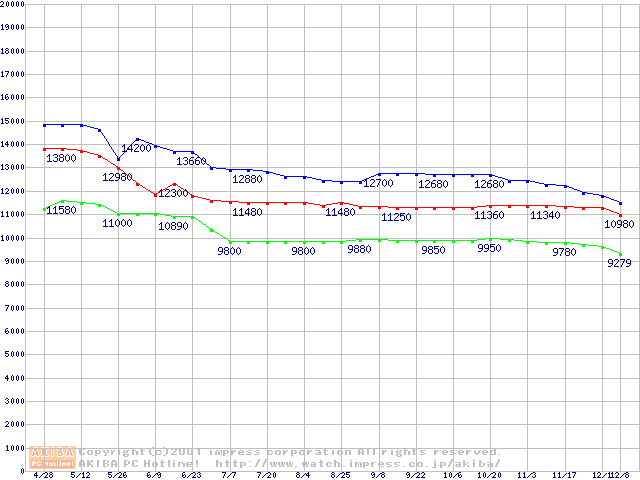 | [↑前グラフ]: | WD Caviar (7200rpm,UltraATA/100)の最安値推移 |