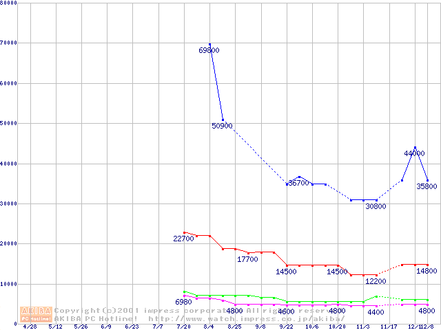 | [↑前グラフ]: | PC100 SDRAM DIMM CasLatency=2 ECC対応の最安値推移 |