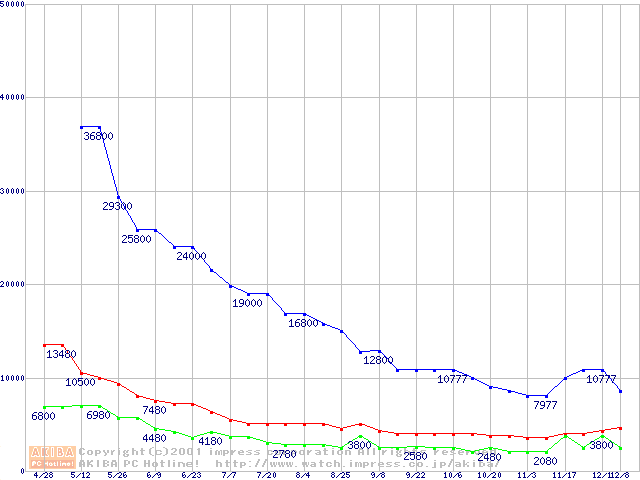 | [↑前グラフ]: | PC133 SDRAM DIMM CasLatency=3の最安値推移 |