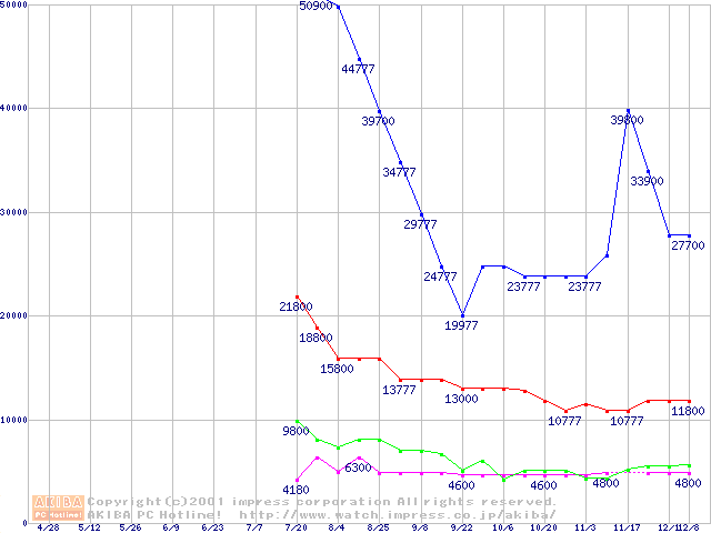 | [↓次グラフ]: | PC133 SDRAM DIMM CasLatency=2の最安値推移 |