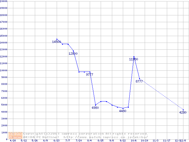 PC133 SDRAM DIMM CasLatency=2の最安値推移