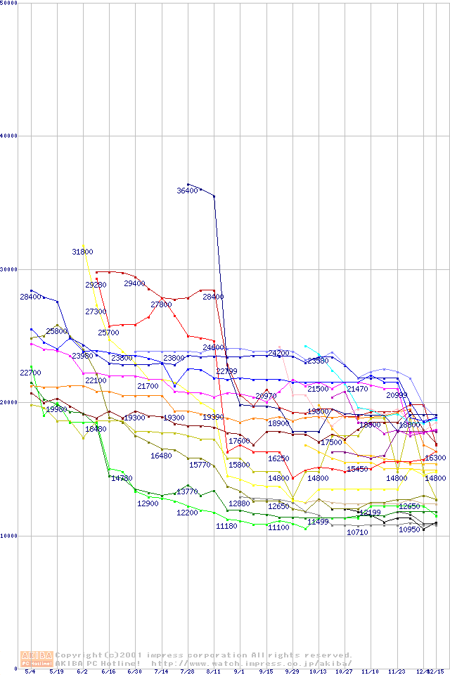 CPU主要製品(最安値1万円~2万円未満)の最安値推移
