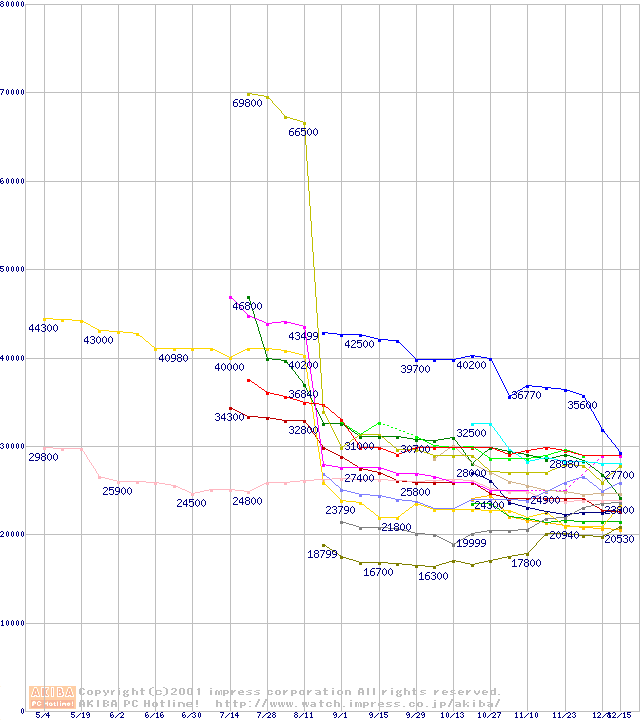 CPU主要製品(最安値3万円以上)の最安値推移