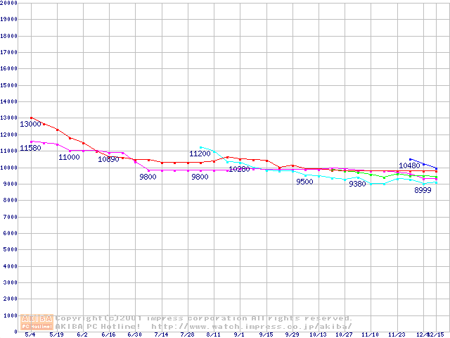 | [↑前グラフ]: | HDD 10GB~20GB未満(7200rpmクラス)の最安値推移 |