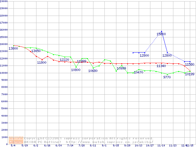 | [↑前グラフ]: | HDD 20GB~30GB未満(7200rpmクラス)の最安値推移 |