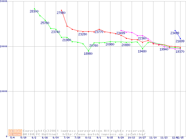 | [↓次グラフ]: | HDD 100GB以上(7200rpmクラス)の最安値推移 |