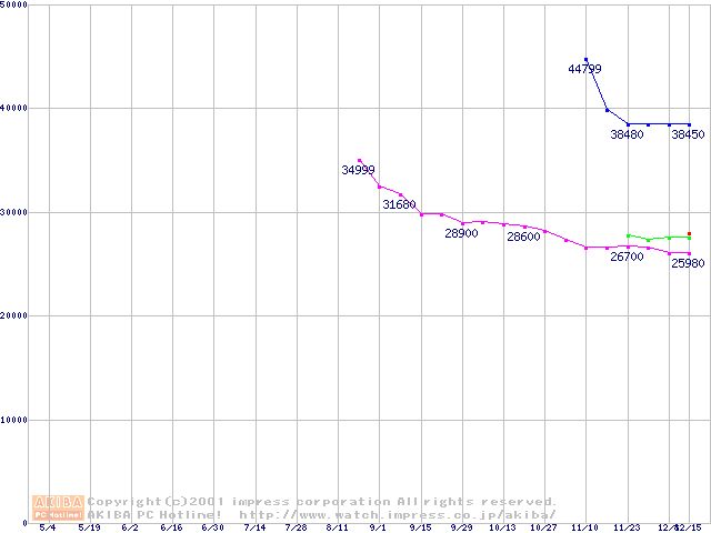 HDD 100GB以上(7200rpmクラス)の最安値推移