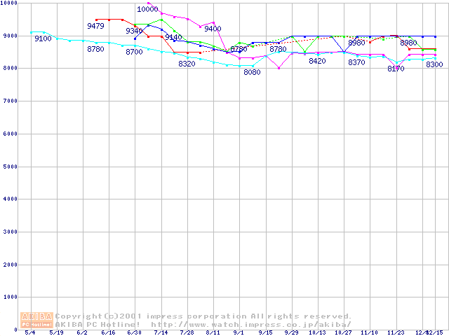 | [↑前グラフ]: | HDD 10GB~20GB未満(5400rpmクラス)の最安値推移 |