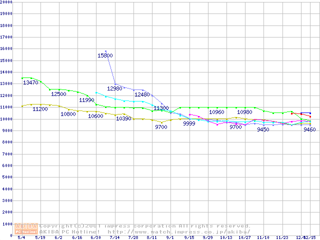 | [↑前グラフ]: | HDD 30GB~40GB未満(5400rpmクラス)の最安値推移 |