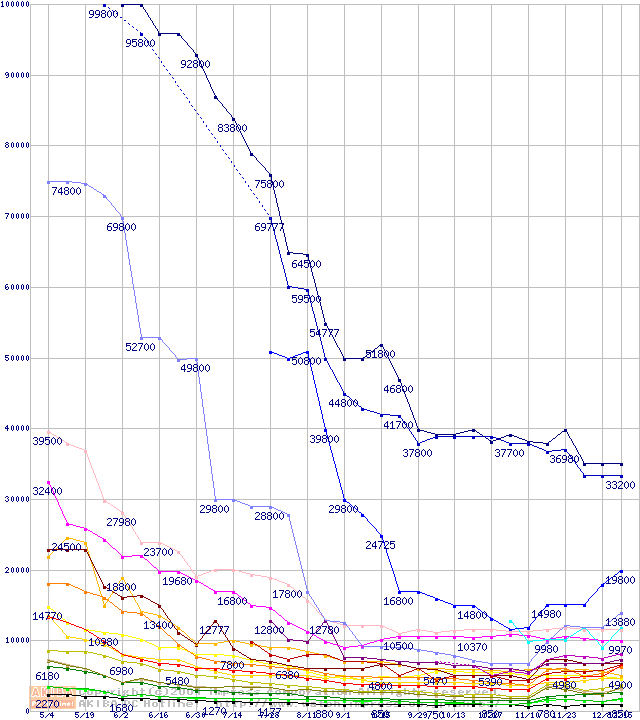メモリ主要製品の最安値推移