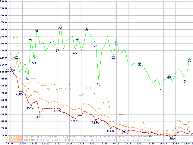 メモリ主要製品の最安値推移