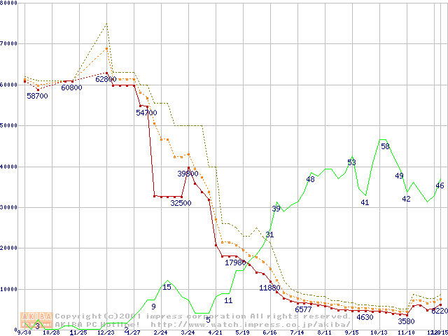 メモリ主要製品の最安値推移