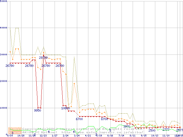 PC800 DRDRAM RIMMの最安値推移