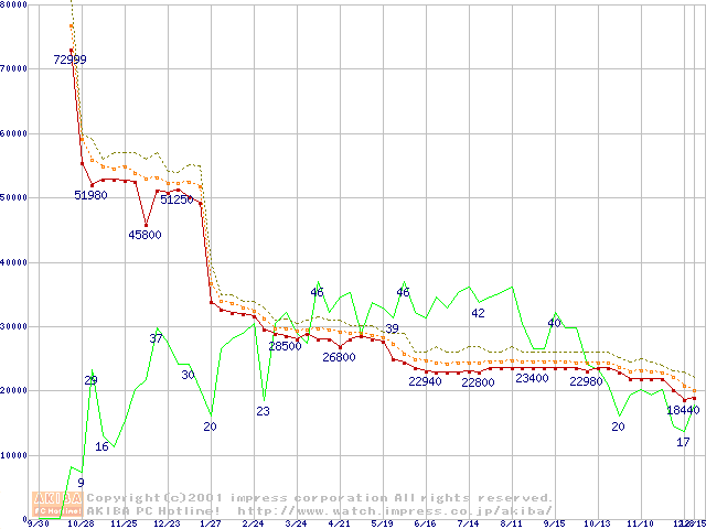 Pentium III 1BGHz FC-PGA リテールパッケージの価格推移