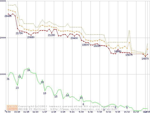 Pentium III 800EBMHz FC-PGA リテールパッケージの価格推移