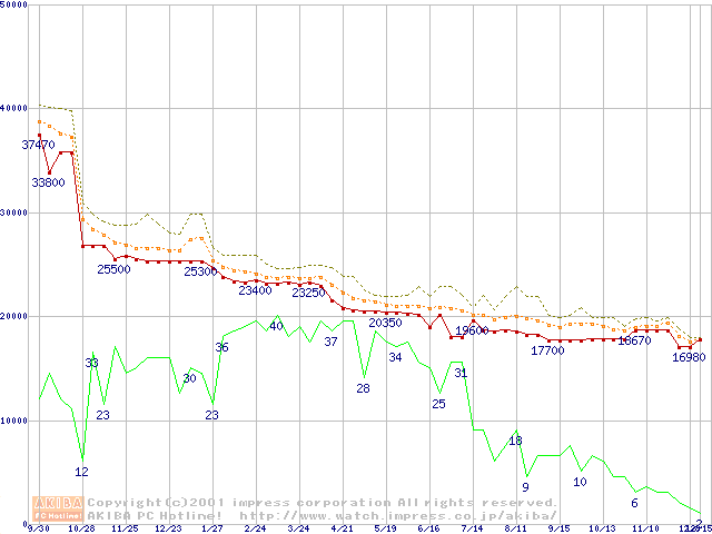 Pentium III 866MHz FC-PGA リテールパッケージの価格推移