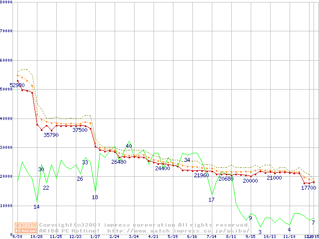 Pentium III 933MHz FC-PGA リテールパッケージの価格推移