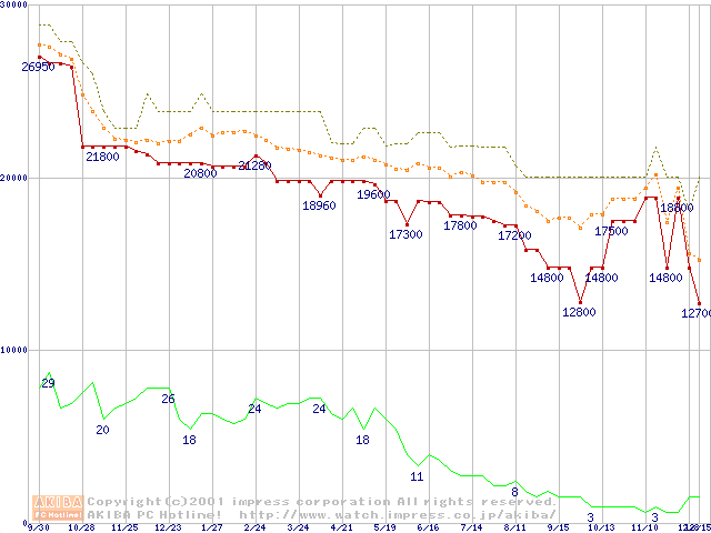 Pentium III 800EBMHz SECC2 リテールパッケージの価格推移
