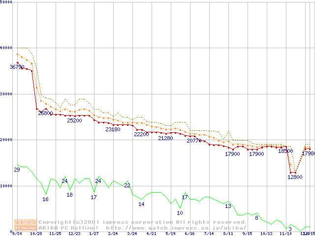 Pentium III 866MHz SECC2 リテールパッケージの価格推移
