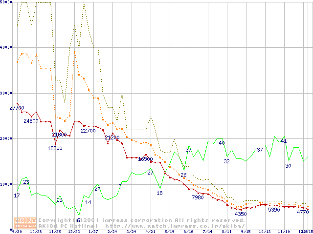 PC800 DRDRAM RIMMの最安値推移
