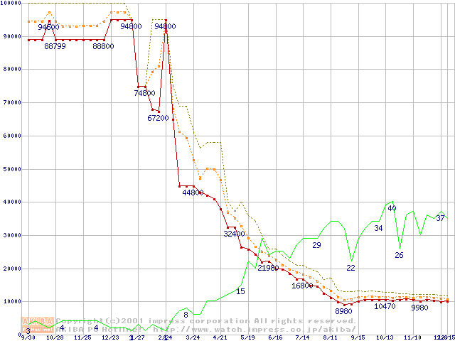 PC800 DRDRAM RIMMの最安値推移