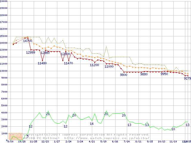 WD Caviar (7200rpm,UltraATA/100,20GB/Platter)の最安値推移