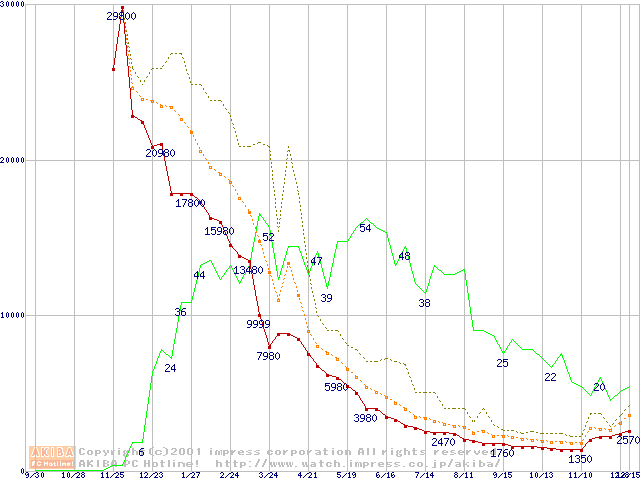 メモリ主要製品の最安値推移