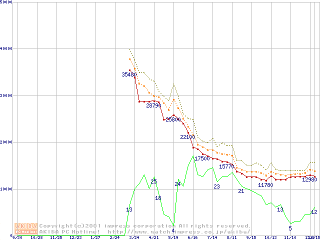 Athlon 1.33GHz(FSB266) (Thunderbird) バルクの価格推移