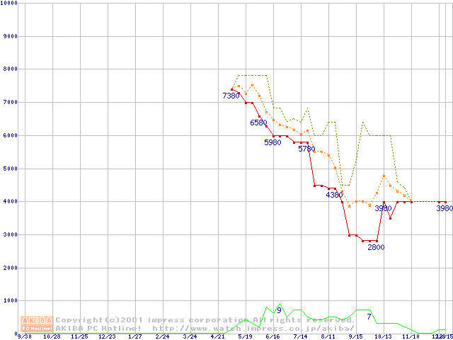Socket 370 (PGA,FSB 100MHz,L2 64KB)の最安値推移