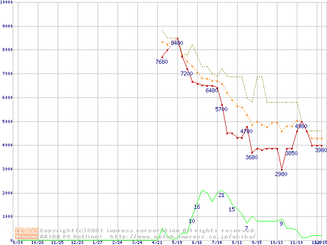 Socket 370 (PGA,FSB 100MHz,L2 64KB)の最安値推移