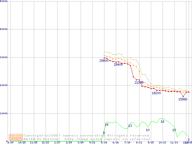 DiamondMax 536DX (5400rpm,UltraATA/100,33.3GB/Platter)の最安値推移