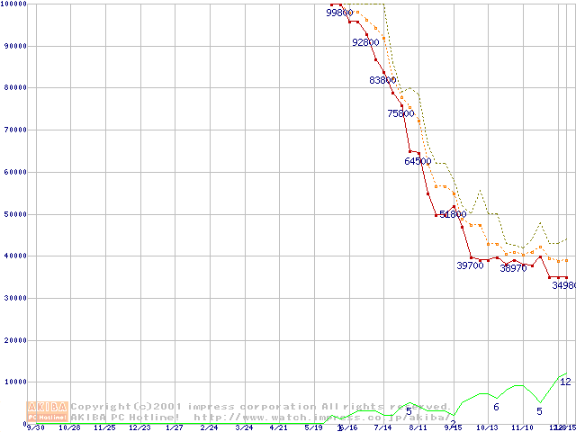 PC800 DRDRAM RIMM ECC対応の最安値推移